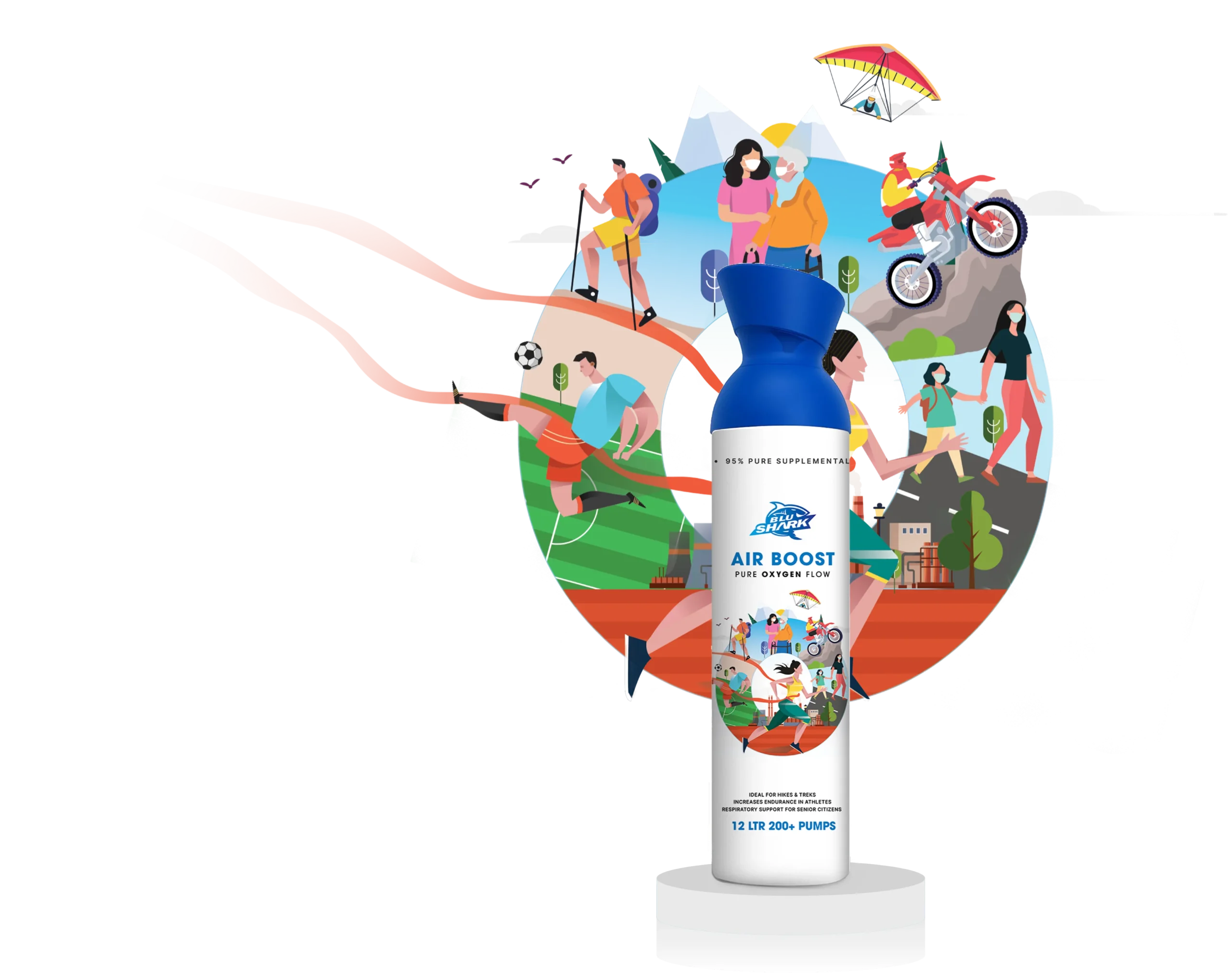 Designed to fuel your fast-paced lifestyle, Blu Shark Air Boost is your anytime travel companion. Simply toss it into your gym bag or hiking backpack, or use it for recovery during any activity or sport—whether running, hockey, football or biking. Engineered to shorten recovery time and increase stamina, Air Boost gets you back in the groove and helps you perform your daily tasks with ease.